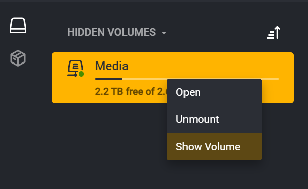 Hidden Volumes: These volumes have been hidden by the user. For more on this see Hide Volumes.